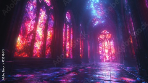 Fototapeta premium Gothic Cathedral With Glowing Stained Glass Windows