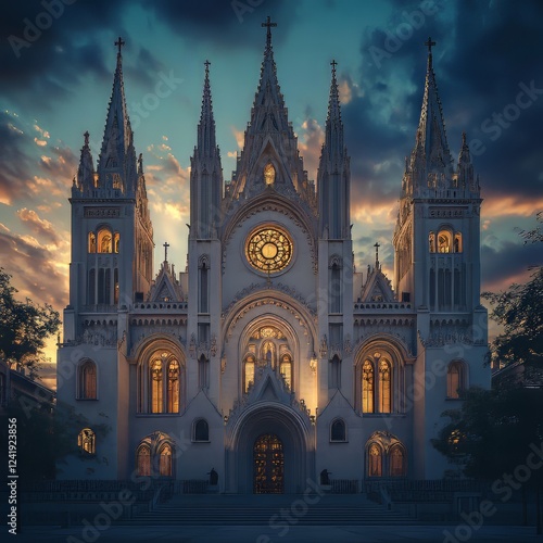 © KOOLAIDMAN100X, Fototapeta premium Gothic church at sunset's glow