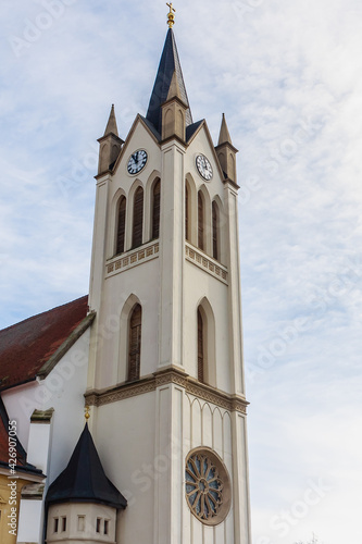 Fototapeta premium Gothic Franciscan Parish Church in Kezsthely, Hungary. Built in 1390 and renovated in 19th century in Baroque style, giving it an imposing neo Gothic
