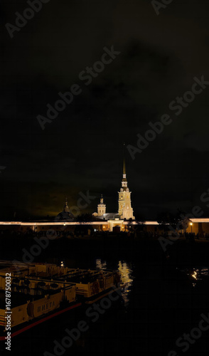 © Nataliia, Fototapeta premium Gothic glow casts over city's historic fortress, Slavic lore whispers, illuminating Nights of Museums, maritime shadows dance