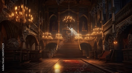 Obraz premium Gothic interior illuminated with candles, generative ai