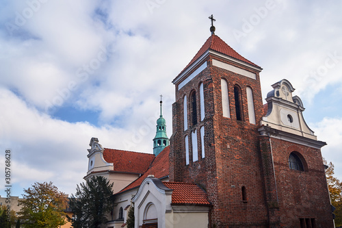 Obraz premium Gothic parish church with belfry in Gniezno.