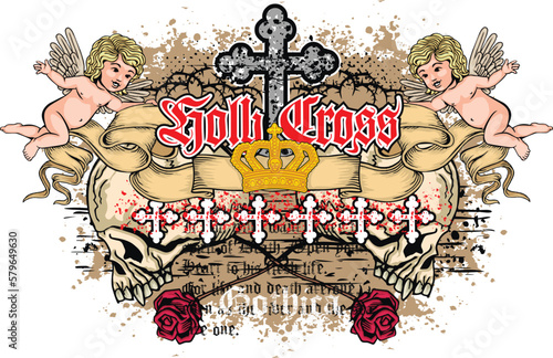 Obraz premium Gothic sign with skull, grunge vintage design t shirts