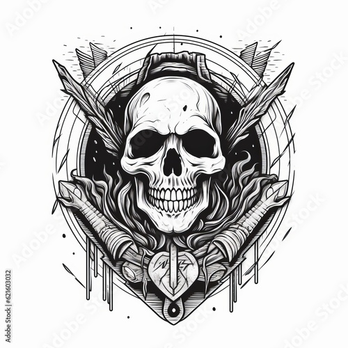 Obraz premium Gothic skull logo. Grunge vintage monochrome illustration. Generative AI.