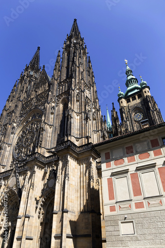 Fototapeta premium Gothic St. Vitus' Cathedral on Prague Castle in the sunny Day, Czech Republic