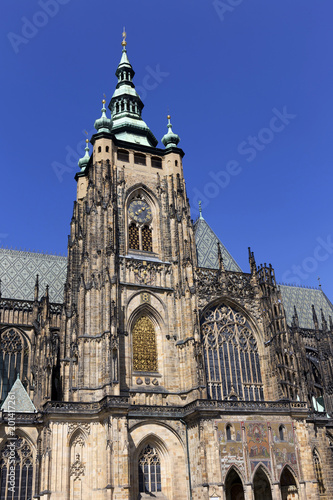 Fototapeta premium Gothic St. Vitus' Cathedral on Prague Castle in the sunny Day, Czech Republic