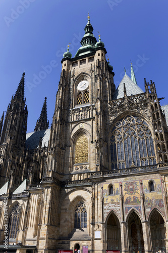 Fototapeta premium Gothic St. Vitus' Cathedral on Prague Castle in the sunny Day, Czech Republic