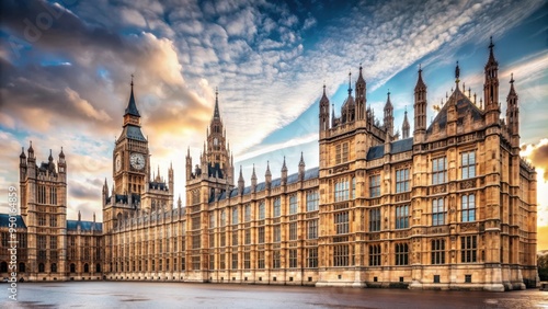 Fototapeta premium Gothic-style architecture of the Palace of Westminster , Parliament, iconic, London, government, UK, historic