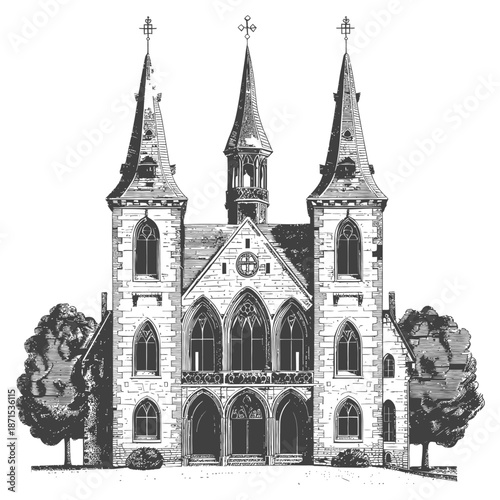 Fototapeta premium Gothic Style Church Building Architectural Drawing