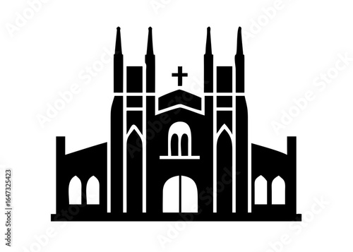 © AkonSt, Fototapeta premium Gothic-style church facade, silhouette.