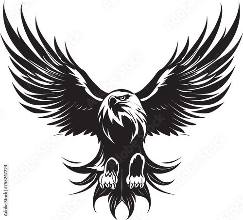 © BABBAN, Fototapeta premium Gothic Triumph Tattoo Style Eagle Logo Design Inked Aviary Eagle with Skull Vector Emblem
