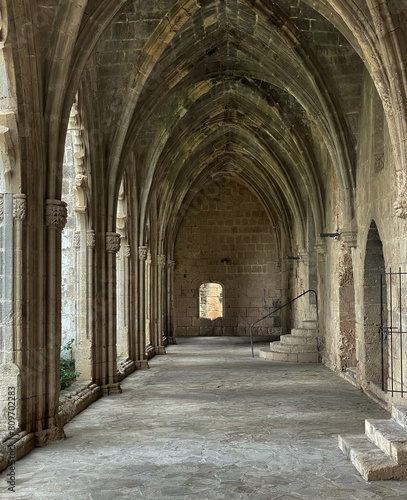 Fototapeta premium Gotischer Gang in der Klosterruine Abtei Bellapais bei Girne (Kyrenia),...