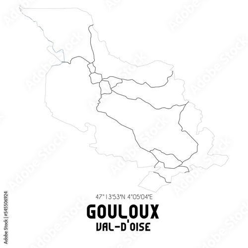 Obraz premium GOULOUX Val-d'Oise. Minimalistic street map with black and white lines.