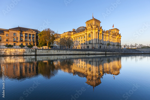 © travelview, Fototapeta premium goverment buildings with reflection in Spree, Berlin
