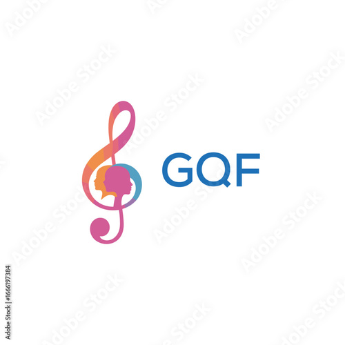 Fototapeta premium GQF “Creative music logo with human silhouettes and treble clef in gradient colors, GQF Later Logo, modern artistic design isolated on white background”
