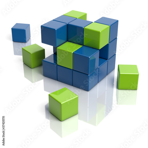 © ag visuell, Fototapeta premium Grüne und blaue Bausteine