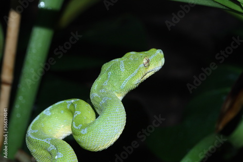 © Daniel, Obraz premium Grüner Baumpython im Terrarium in Deutschland.