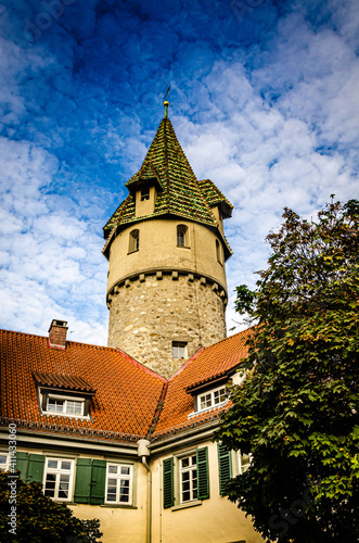 © dietwalther, Fototapeta premium Grüner Turm in Altstadt von Ravensburg