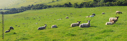 © SusaZoom, Fototapeta premium grünes Farmland mit Schafherde, Südengland