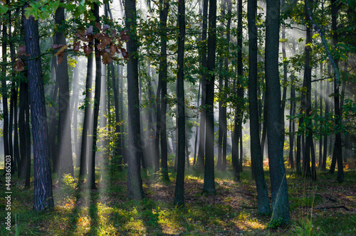 © Sebastian, Fototapeta premium Gra świateł w lesie