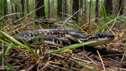 Fototapeta premium Grace in the Trees: The Louisiana Pine Snake's Forest Journey