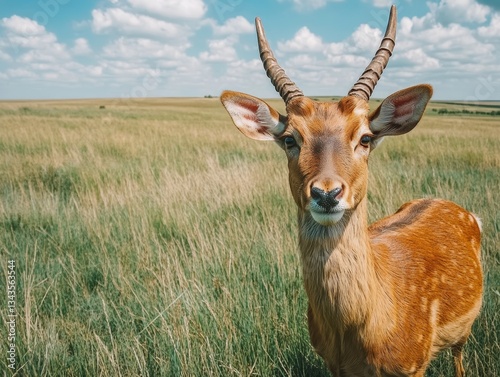 Fototapeta premium Graceful Antelope: A Wildlife Portrait in a Serene Grassland Under a Sunny Sky