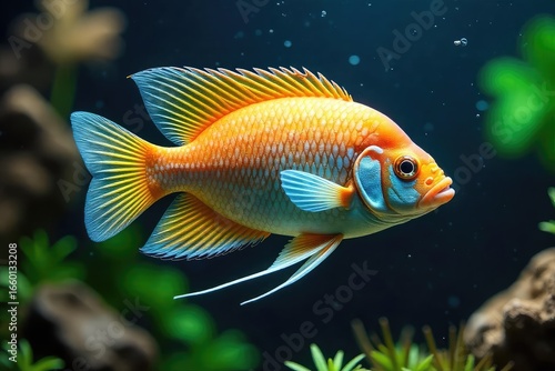 © Sayfar, Fototapeta premium Graceful Aquarius Fish Swimming in Lush Planted Aquarium Vibrant Tropical Wildlife Showcase