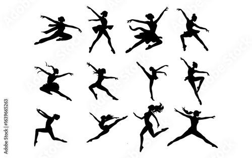 Naklejka premium Graceful Ballerina Silhouettes in Dynamic Poses