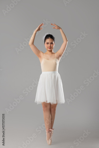 Naklejka premium Graceful ballerina strikes a pose in studio embodying poise and artistry through delicate movements