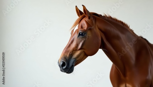 © chanwut, Obraz premium Graceful bay horse looking towards camera in studio, Equestrian, tail, hooves