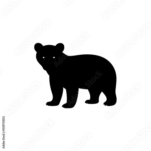 Fototapeta premium Graceful Bear Cub Black Silhouette Stylized Art Form vector illustration...
