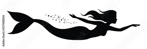 © HAPPY, Obraz premium graceful black mermaid vector on white background