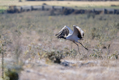 © Bhutan Japan Nature, Naklejka premium Graceful Black-necked Crane Flying in Bhutan