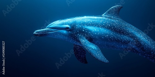 Naklejka premium Graceful Blue Dolphin Glides Through Deep Ocean, Stunning Underwater Wildlife...