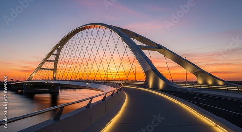 © MDImran, Obraz premium Graceful Bridge Arch at Sunset, a Modern Architectural Marvel
