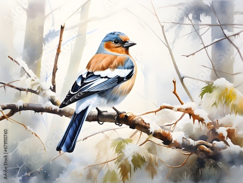 © czphoto, Fototapeta premium Graceful Chaffinch in the Woods: Captured on a White Background