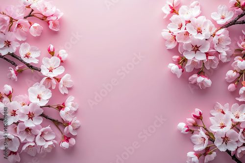 © Pixelcraze, Fototapeta premium Graceful cherry blossoms isolated on pink background
