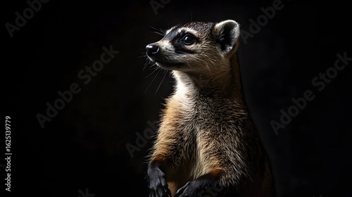 Fototapeta premium Graceful Curiosity: An Alert Coati Standing Upright, Captured in a Detailed and Elegant Studio Portrait