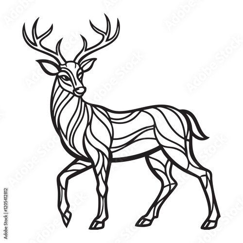 Fototapeta premium Graceful deer in sleek, abstract black line art silhouette on white