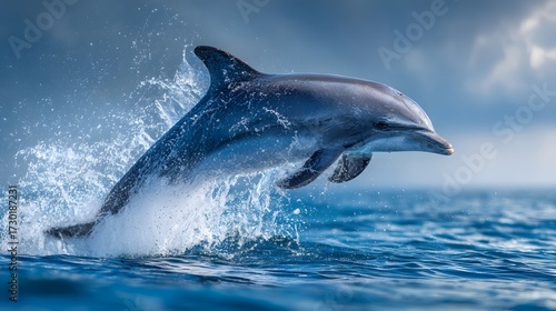 Fototapeta premium Graceful Dolphin Leaping from Ocean Waves
