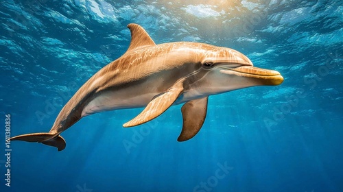 © Ayachiru.p, Fototapeta premium Graceful Dolphin Swimming Underwater in Sunlit Blue Water