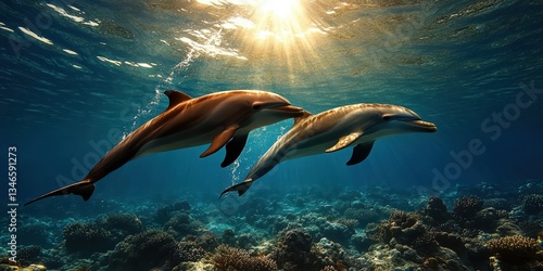 © Elena, Obraz premium Graceful Dolphins in Motion Banner