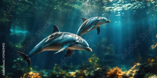 © Elena, Fototapeta premium Graceful Dolphins in Motion Banner