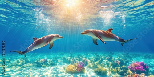 © Elena, Obraz premium Graceful Dolphins in Motion Banner