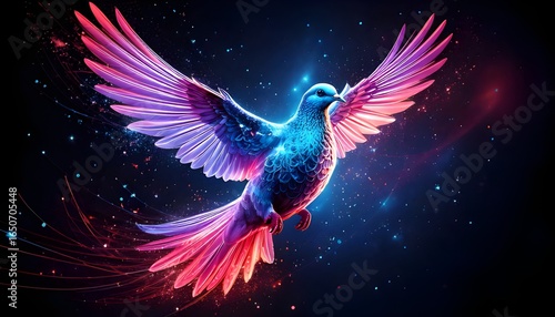 Obraz premium Graceful dove in flight glowing gradient