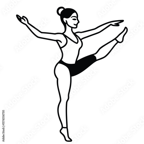 © GFX Corner, Fototapeta premium Graceful female dancer performing a ballet pose with one leg extended silhouette