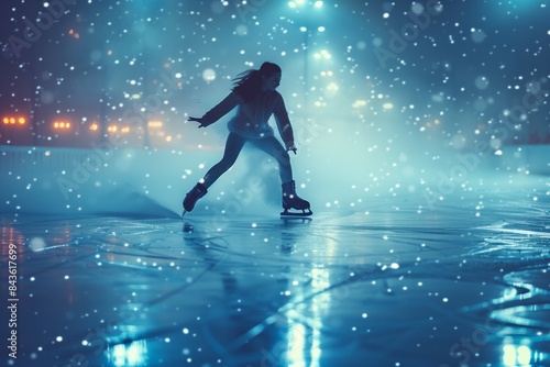 Naklejka premium Graceful Figure Skater Spinning Elegantly on the Ice