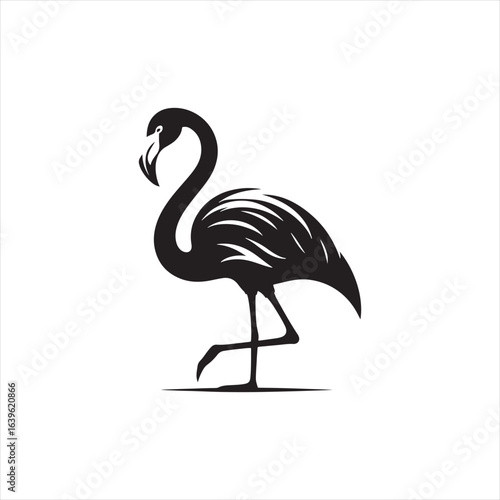 © subur, Fototapeta premium Graceful Flamingo Silhouette Vector Art – Elegant Wading Bird with Long Neck and Legs, Minimal Black Outline Perfect for Tropical Wildlife Themes, Nature Logos, and Decorative Prints