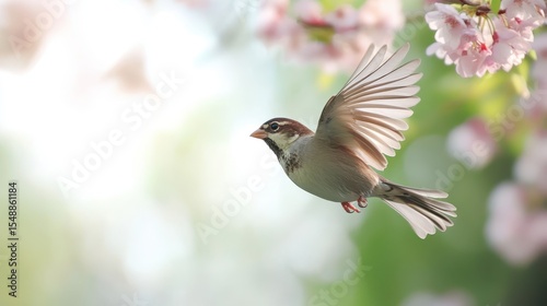 Fototapeta premium Graceful Flying Sparrow against a Bright White Backdrop – Capturing the...