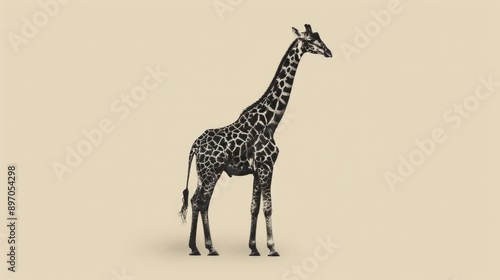 Fototapeta premium Graceful Giraffe Standing Tall Against Beige Background